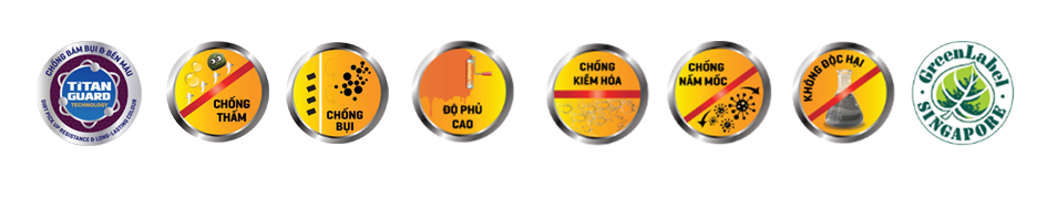 - Chống bám bụi vượt trội: Khả năng chống bám bụi tuyệt vời với công nghệ TitanGuard và MicroGel, giúp giữ cho bề mặt công trình luôn sạch đẹp như mới.