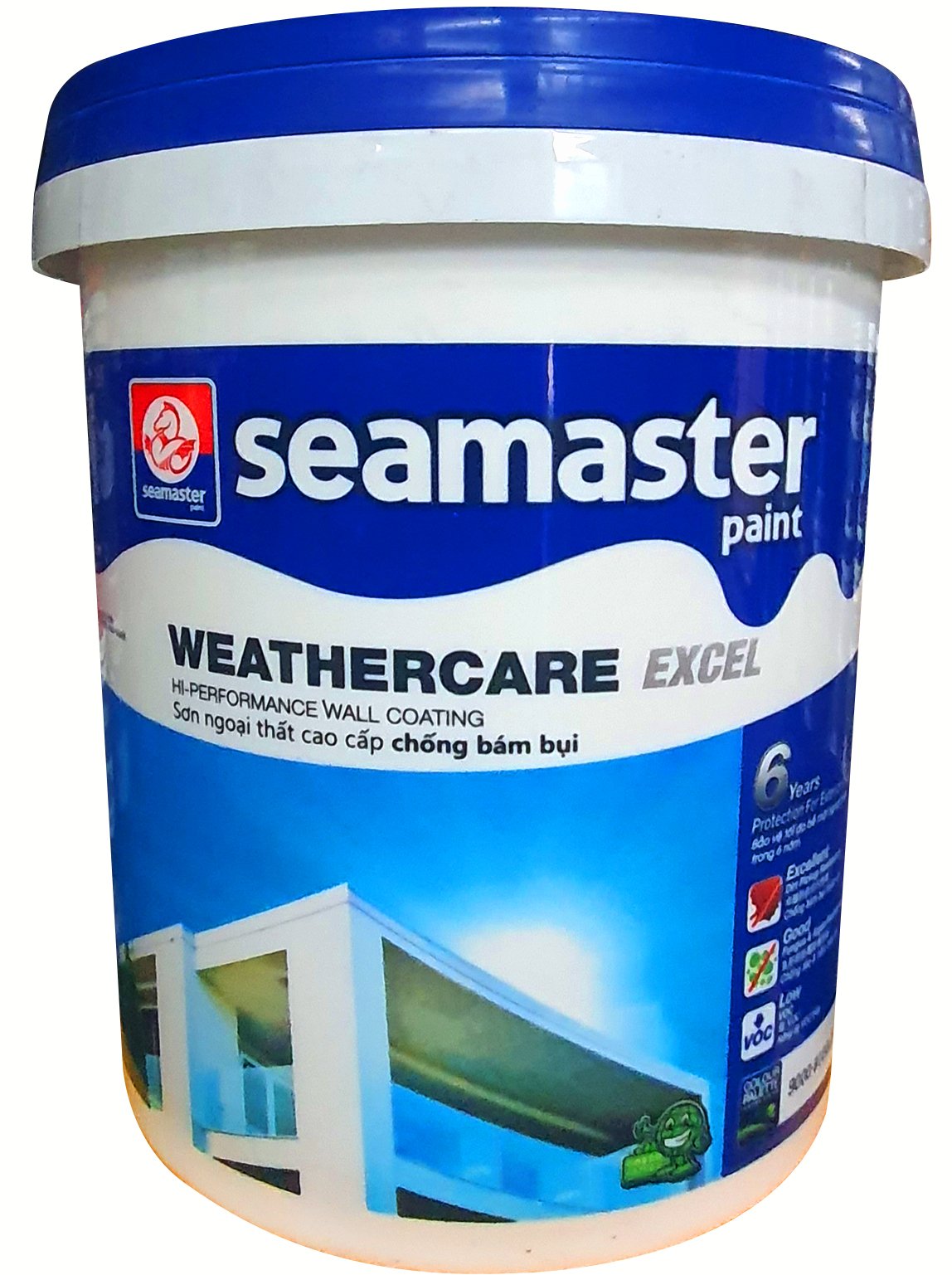 Sơn ngoại thất Seamaster 9000 – WEATHER CARE EXCEL. Loại sơn kiến trúc cao cấp. Đây là loại sơn chất lượng cao với 100% gốc nước Acrylic có khả năng chống tảo, nấm mốc, kiềm và hiện tượng carbon hóa.